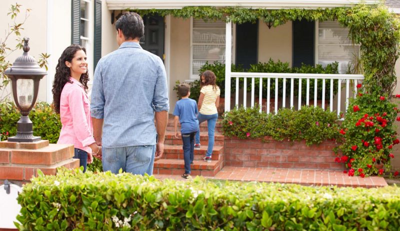 Asian Family smiling enjoying new home